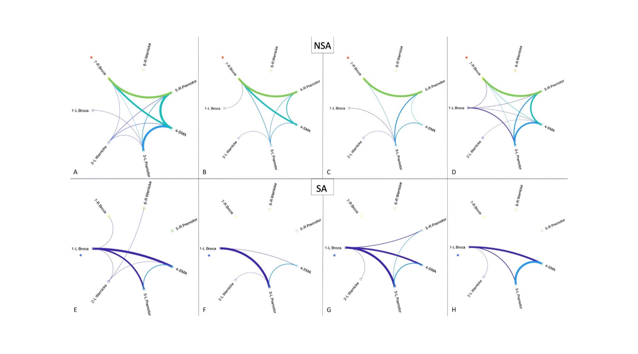Currently, we are studying the role of other networks in language reorganization. By analyzing resting-state co-activation patterns of the default mode network and executive control network, our results show that a brain undergoing neuroplasticity relies on high cognitive functions to compensate for clinical deficits.