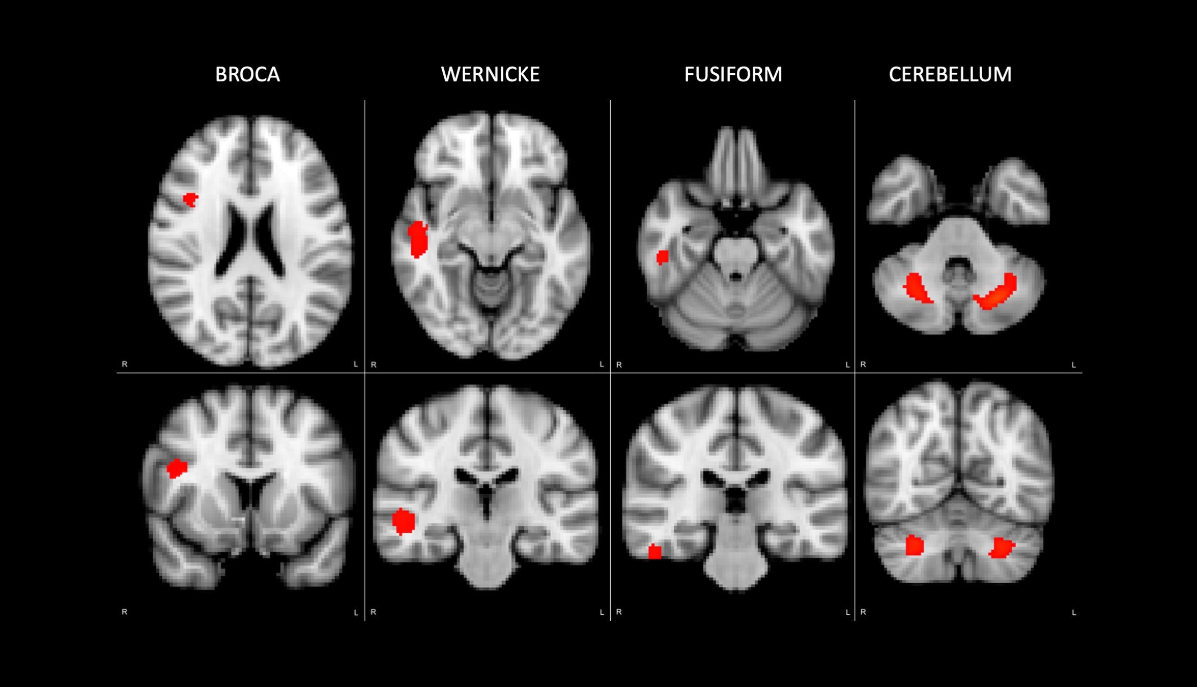 Through pre- and post-surgical fMRI studies in brain tumor patients, we demonstrated increased recruitment of the right hemisphere in language processing, suggesting its critical role in preserving speech function. (PMID: 36765795, PMID: 36433876).