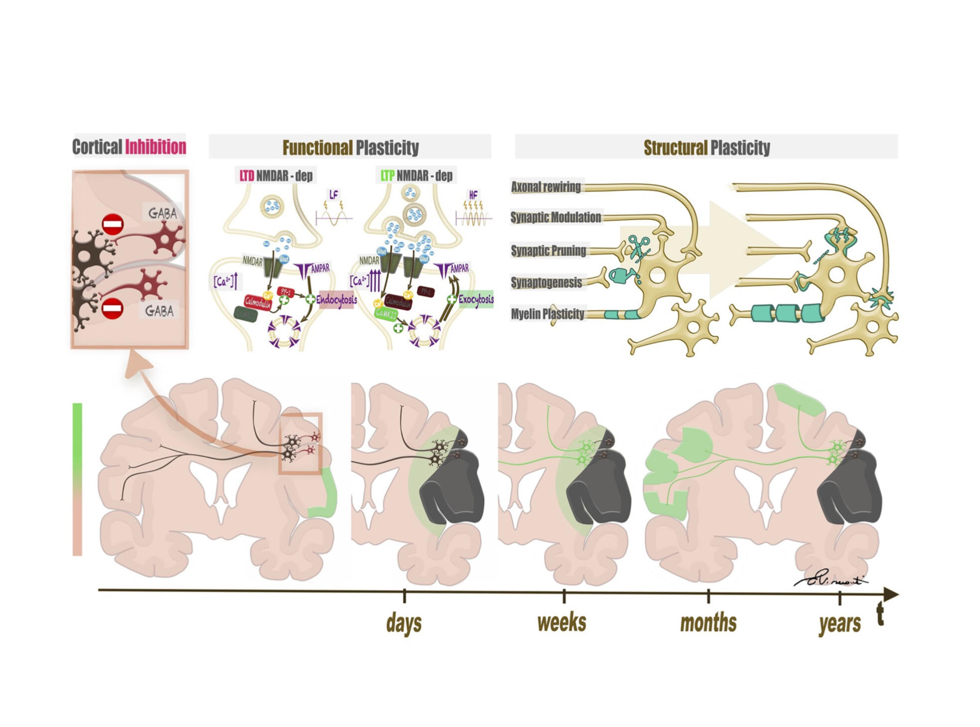 A central aim of our lab is to use neuroimaging to distinguish between beneficial and detrimental patterns of brain reorganization. We focus on developing and validating quantitative measures of neuroplastic changes, leveraging imaging biomarkers to gain deeper insights into the brain's compensatory mechanisms following injury. Our ultimate goal is to inform and design targeted interventions that support functional recovery.